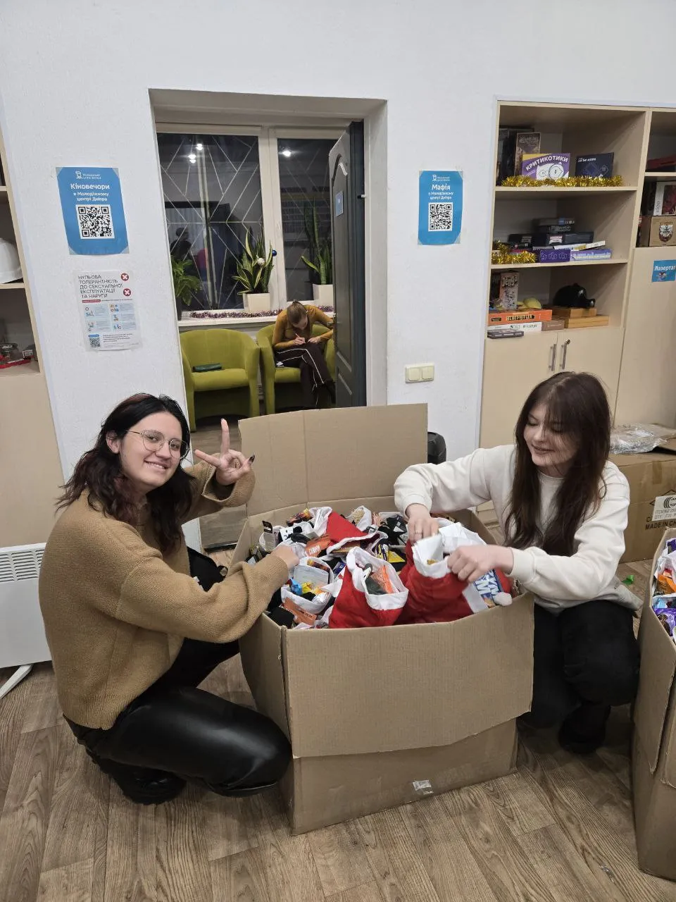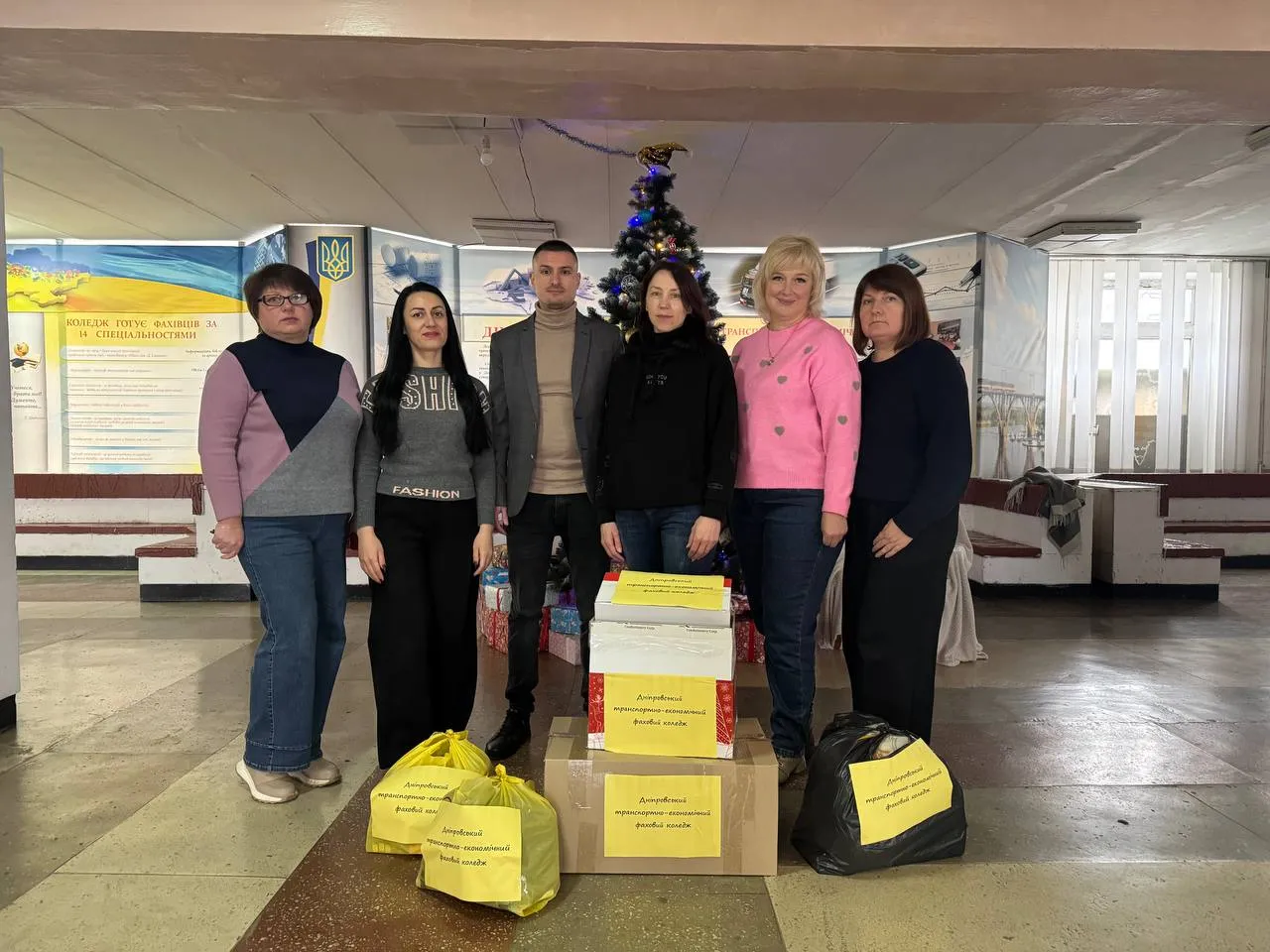 У День Святого Миколая заступник директора з виховної роботи Рустам Береза і Голова ради студентського самоврядування Михайло Сокур передали до Молодіжного центру Дніпра для подальшої доставки на передові позиції: